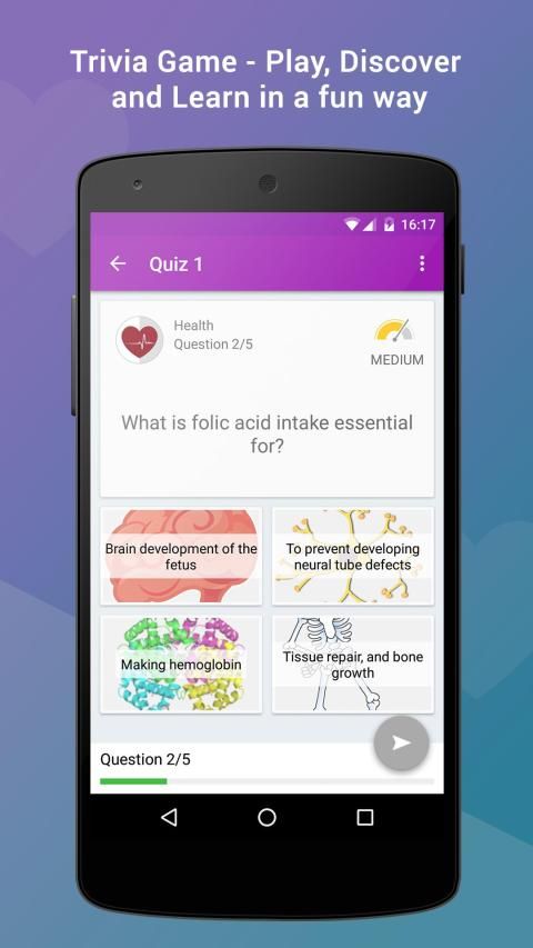 - Trivia game - Test your knowledge related to various pregnancy topics.