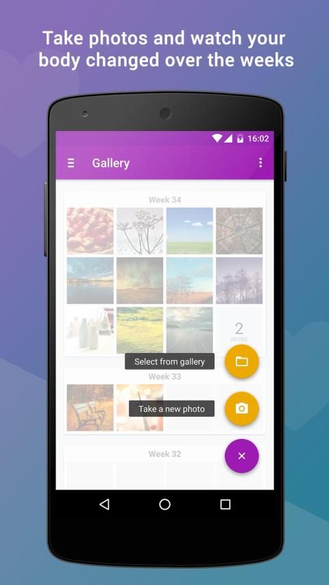 - Pregnancy photos - Take pictures or pick from your phone gallery and see how your body is changed over weeks.