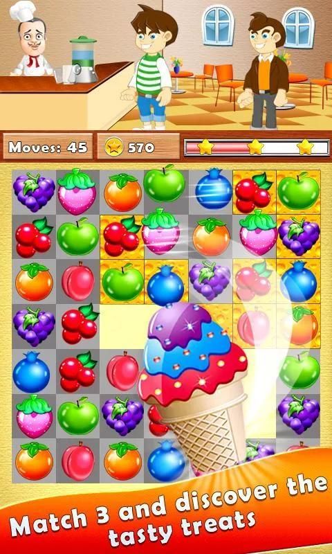Ice Cream Mode: es krim yang tersembunyi di papan permainan. Cari semua es krim dan mengumpulkan buah-buahan dengan menggesekkan atas mereka