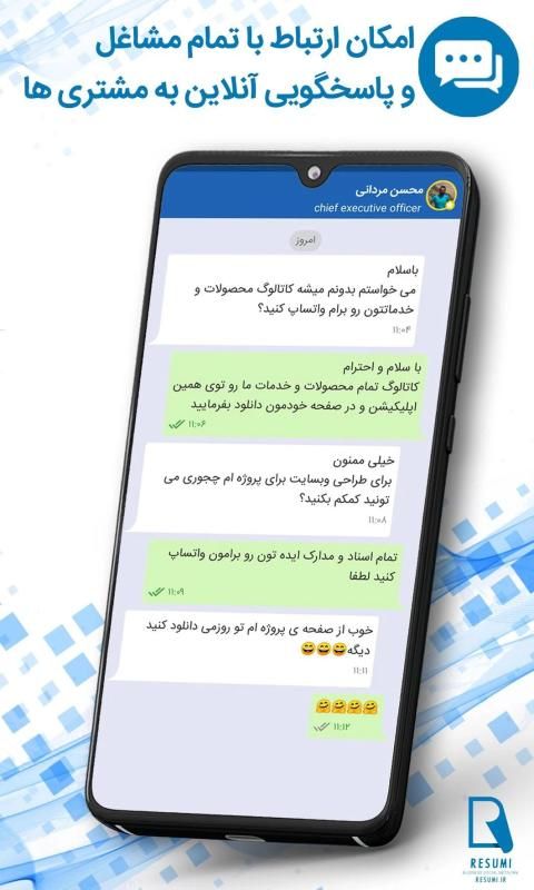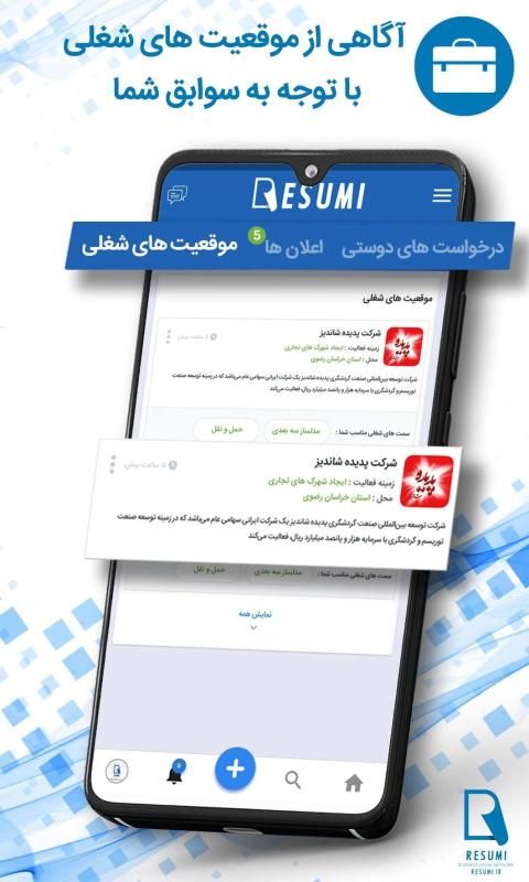 مرحبا لدخول سوق رسمي لعالم التطبيقات 30,000+ مستحدمين يحملون رزومی - resumi: شبکه اجتماعی مشاغل-رزومه ساز فارسی