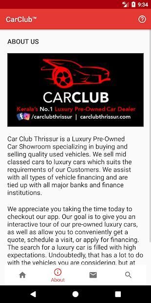 Car Club Thrissur is a Luxury Pre-Owned Car Showroom specializing in buying and selling quality used vehicles. We sell mid classed cars to luxury cars which suits the requirements of our Customers. We assist with all types of vehicle financing and are tied up with all major banks and finance institutions.