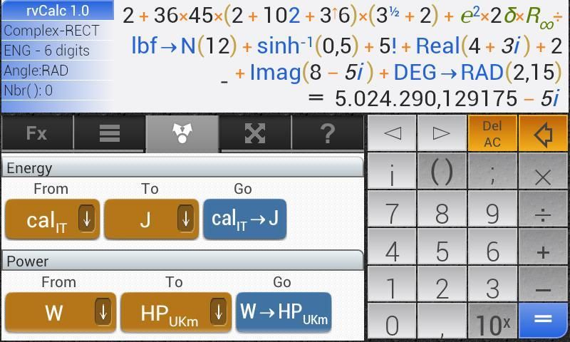 ▪ Sebuah fitur lengkap Scientific Calculator dengan banyak Fungsi, Matematika & Fisika Konstanta, Bilangan Kompleks, Auto-Koreksi Fitur dan satu set lengkap Konversi Satuan