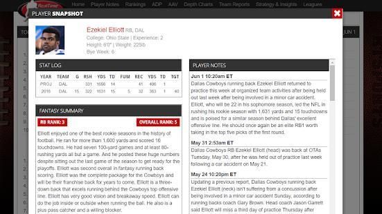 Jangan puas dari analisis tanggal, peringkat, dan menipu-lembar, biarkan RealTime Fantasy Sports tetap up to date sehingga Anda dapat memenangkan liga fantasi Anda tahun ini.