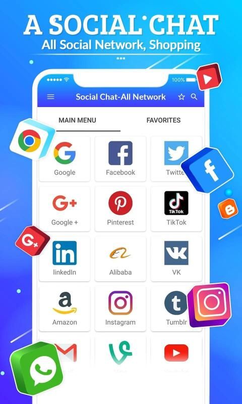 app provides an easy access to all social networks namely: Facebook, Twitter, Instagram, Snapchat, whatsapp and many more.