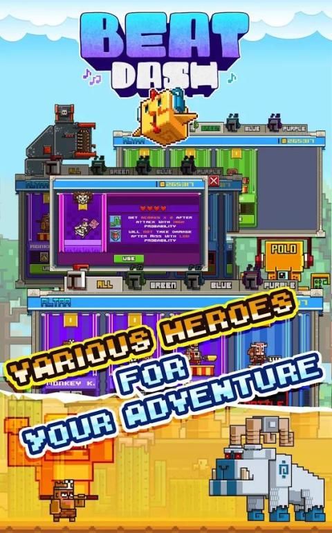 The original running rhythm game. Beat the enemies with the rhythm, over 10 kinds of enemies. Try to challenge More than 60 stages. Every stage with a new music or song, all music and songs are original. 30 heroes can be chosen. Play the brand new game now!