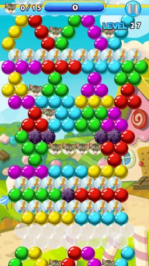 4.Pop gelembung untuk menyelamatkan anak anjing kucing pemarah sebagai target dalam beberapa tingkatan.