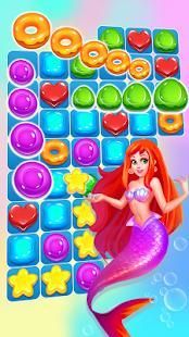 Candy mermaid match 3 ,The ocean has many secrets and mysteries. The mermaid is the biggest treasure of the princess and the ocean. She always likes to collect shells, swim trying to surpass pirate ships, watch starfish, play with fish and dolphins, and solve difficult problems.