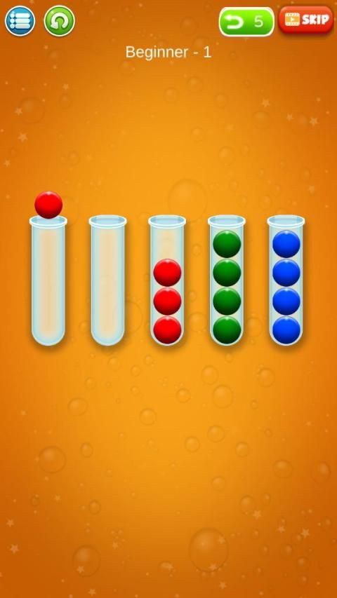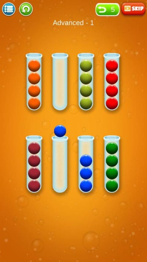 Try to sort the colored balls in the tubes until all balls with the same color stay in the same tube.