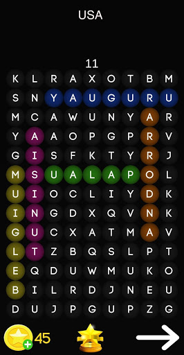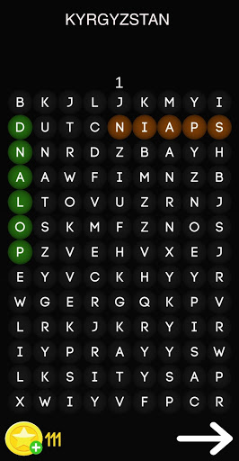 Pilihan kata-kata secara acak untuk setiap level menyediakan minat tertinggi dalam permainan dan kegembiraan di level baru. Nama-nama negara dipilih secara acak untuk setiap level, jadi dalam game ini Anda tidak akan pernah bosan dan Anda tidak perlu memutar ulang level yang sama bahkan jika Anda memulai permainan dari awal.