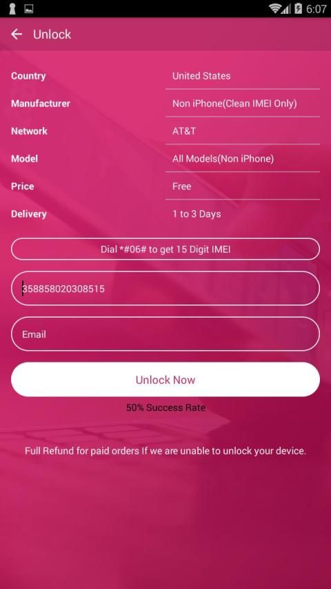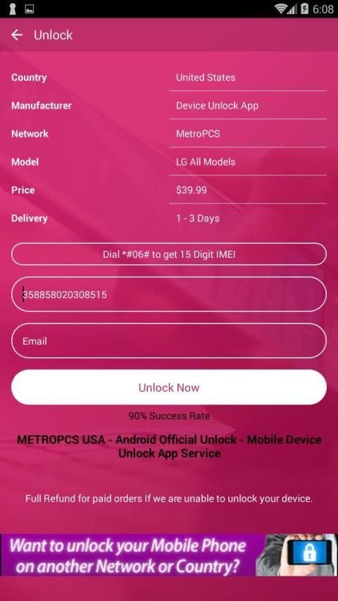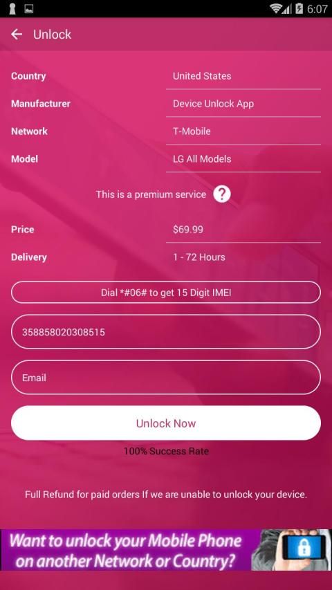Free unlocking for all LG models on AT&T network. Unlocks all models, even the latest ones if SIM is listed as clean. For other networks, the LG service will unlock your mobile device at very low price. Receive code via in-app notification. You will get notified in your app as soon as you code is available. Easy to use and very functional app and free to use.