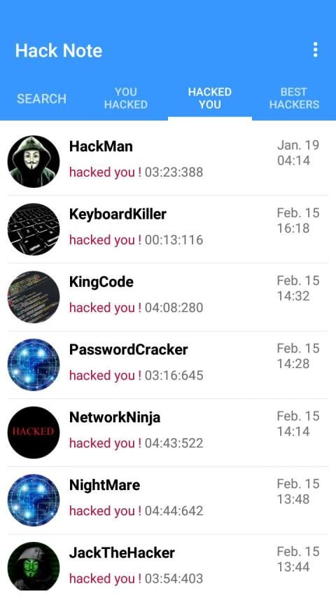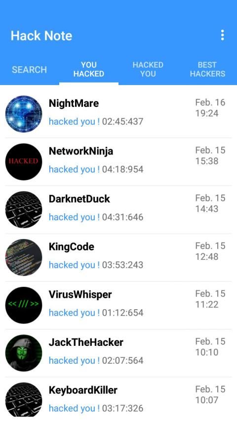 Similarly to this, there is also a listview where you can sroll through your hackers and read their notes left for you. And if you want to hack them back, start a game with just a single click.