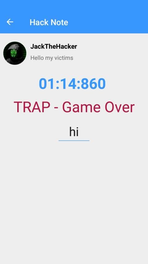 Hack Note adalah gim bebas sosial sederhana tempat Anda dapat meretas pengguna lain dengan memasukkan dua karakter alfa. Tetapi berhati-hatilah agar keyboard Anda tidak terlalu panas, karena waktu Anda hanya terbatas. Setelah memasukkan kombinasi yang tepat Anda dapat meninggalkan catatan kepada korban Anda. Tetapi berhati-hatilah ! Saat meretas, Anda juga bisa terperangkap. Dalam hal ini permainan sudah berakhir.