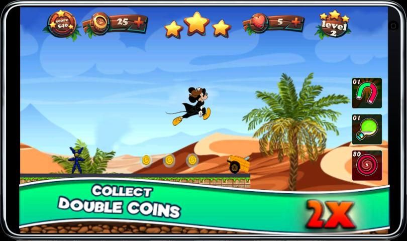 Let the magic running mickey adventure begin and help Help Minni to escape from the cursed abandoned castle deep in the jungle, there are many monsters that live around a witch who cast an evil spell on the castle. Avoid that temple ! and Bring Micky the mouse Escape from the castle and out of the jungle. Dash and run as fast as you can!