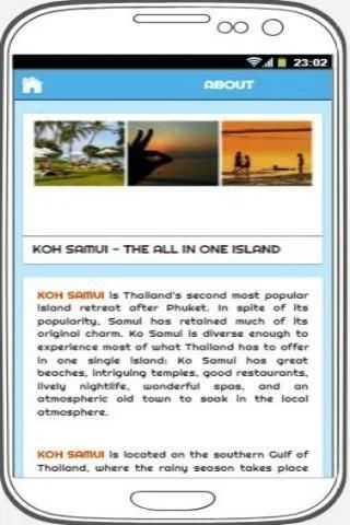 Koh Samui Travel Booking app also contain hotel booking with favourable deals, local tips dos' and donts', local words vocabulary and emergency no phone for your trip to Ko Samui.