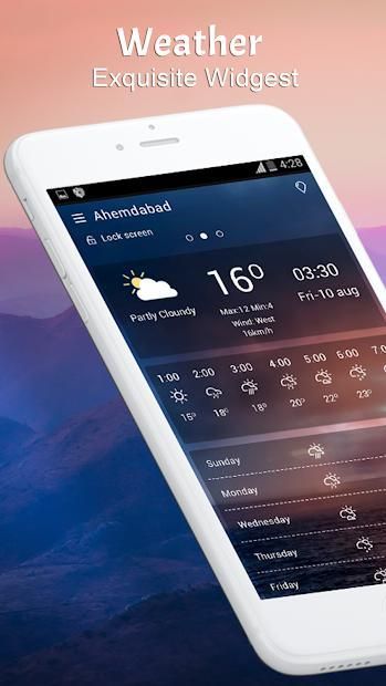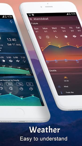 - Extended forecast for any coming day of the week or hour: just tap it to get weather details