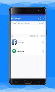 Tidak ada lagi mencari aplikasi social messenger. Dengan Messenger, Anda hanya perlu satu kali klik untuk membuka aplikasi messenger Anda setiap kali Anda ingin memiliki utusan dengan teman dan keluarga, menunjukkan waktu terbuka setiap aplikasi messenger, menemukan aplikasi utusan yang paling sering digunakan.