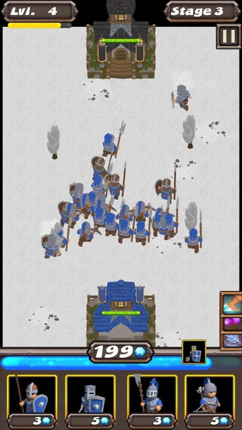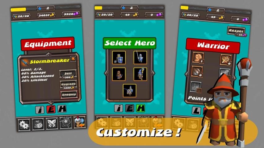 There is a variety of heroes in Pocket RTS - Kingdoms, such as Knights, Archers and wizards. Heroes can be equipped with items found or bought throughout the gameplay. Create unique builds, such as an Archer attacking like a Gattling gun, or a Knight that is extremely hard to kill, either due to lifesteal or pure tankiness! Items can be further upgraded, or sold.