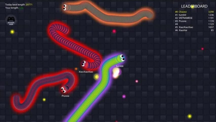 Hati-hati - jika kepala Anda menyentuh ular lain, Anda akan meledak dan kemudian permainan berakhir. Tetapi jika Anda mendapatkan ular lain untuk bertemu dengan ANDA, maka MEREKA akan meledak dan Anda dapat memakan sisa-sisa mereka!