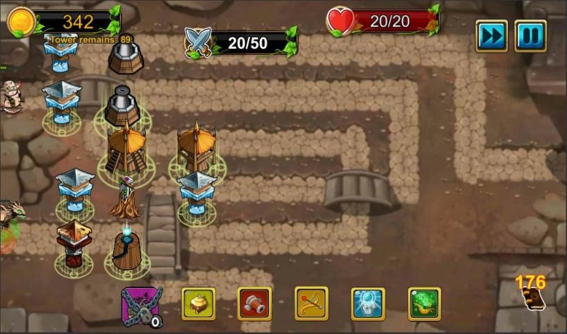Ada 5 Menara untuk pertahanan, 6 keterampilan, dan 15 jenis musuh. Anda dapat membaca penjelasan lengkap dalam permainan.