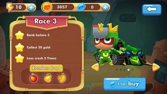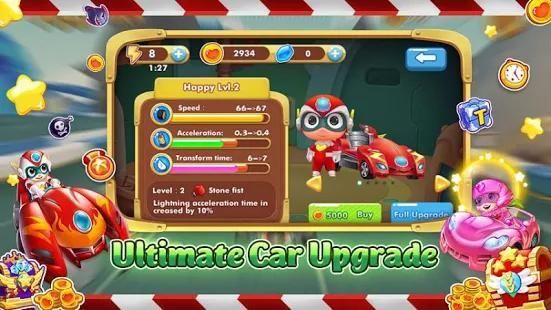 Memenangkan perlombaan dan mengumpulkan emas untuk meng-upgrade Anda mobil super transformable untuk membuat tenaga lebih dari sebelumnya dan membangun super hero baru.