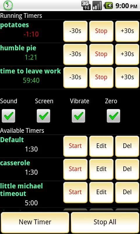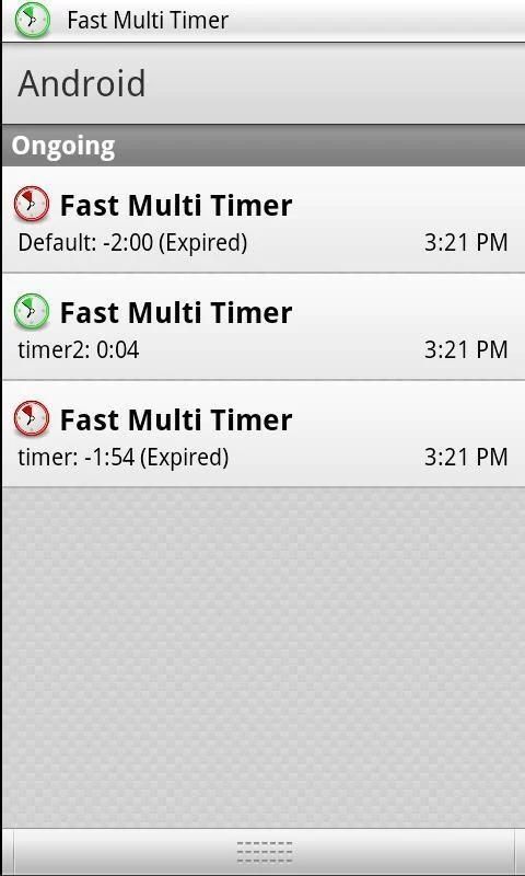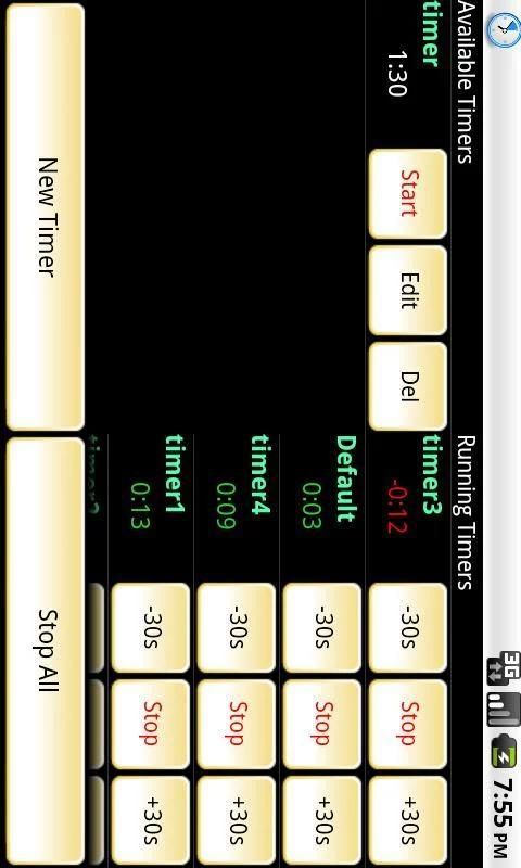 Beberapa timer dapat diatur dan masing-masing dapat diberi suara yang unik. Timer disimpan off untuk digunakan cepat dan nyaman. Timers bahkan dapat digunakan sebagai alarm (cara yang baik untuk menghemat baterai) melalui keep pilihan hidup. Set timer, keluar dari aplikasi, timer akan api pada waktu berakhirnya awal.