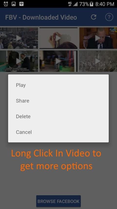 Dengan downloader video gratis untuk facebook Anda dapat menonton video download dan foto kemudian dan membaginya dengan teman-teman Anda.