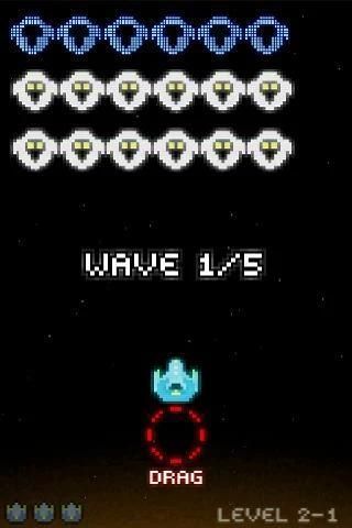 Control is ultra simple, just move the spaceship in space with one finger, and auto-fire on the invaders. Collect power-up to obtain new weapons and lives, make your way through asteroid fields and collect power-up that suddenly switches to a 3D space mode.