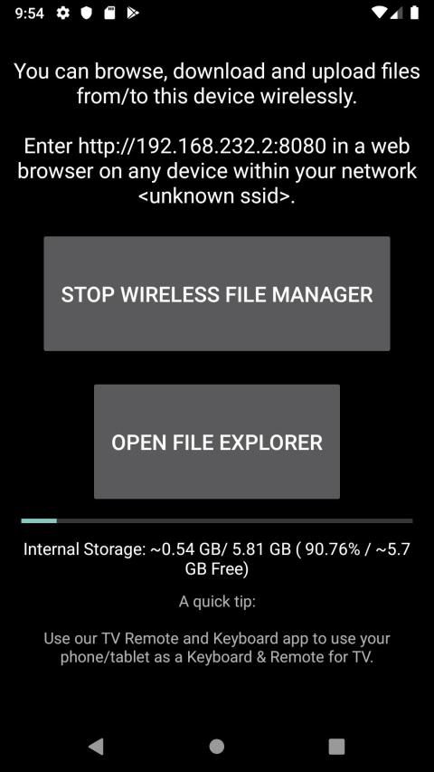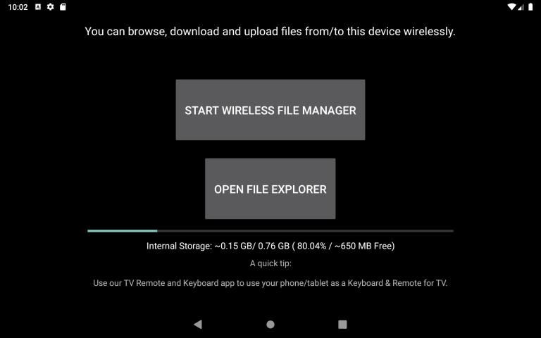 Includes a file explorer that allows you to browse, open and delete files stored on Android TV.