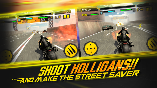 • Buy more powerful weapon, get Bounty points by shooting the hooligans.