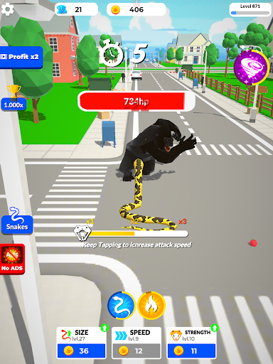 Nyatakan perang di kota ini! Buat Mega Rampage, Havoc, dan Chaos! Nyalakan mode Sharknado untuk menghancurkan apa pun yang menghalangi Anda. Tumbuh sampai Anda menjadi tornado ular yang memakan aspal, bangunan, dan mobil cukup sial berada di jalurnya! Saksikan manusia terbang online, melihat pohon-pohon ditarik keluar dari tanah, dan rumah-rumah meledak ke bit dan potongan! Sekarang setelah Anda reptil yang kuat dan besar, mengambil kendali penuh atas kekuatan brutal ini! Ketuk dan hancurkan semuanya!