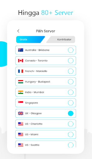 Dengan aplikasi ini Anda dapat menemukan semua server di seluruh negara dan lautan seperti