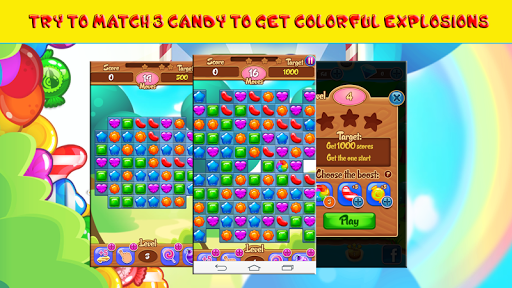 The game of candy fever has arrived! Play the most popular explode candy game to win 3 stars. Join the candy fever and create lines of 3 candies to exploit them and earn points to get the 3 stars!