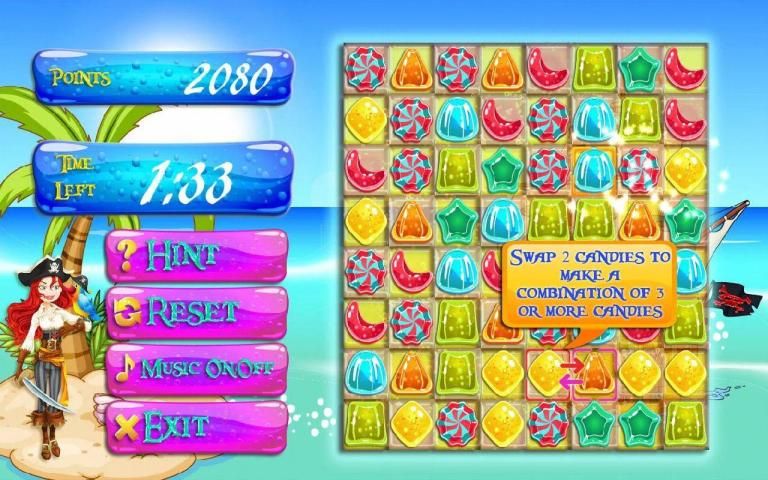 Become a pirate and plunder the 7 seas for delicious candy in this match 3 game.