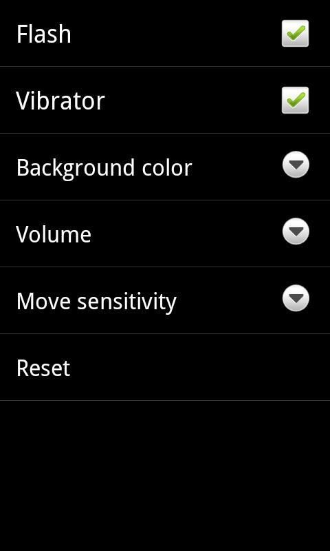 Set move sensitivity, flash, vibration, background color, and volume