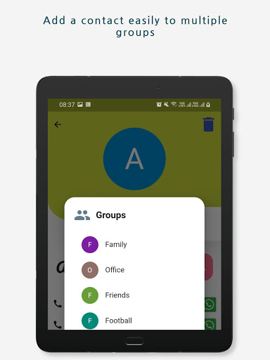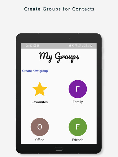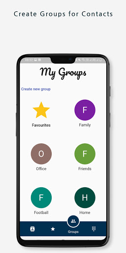 2. Buat grup yang berbeda untuk kontak Anda untuk mengelolanya dengan mudah, seperti keluarga, teman, kolega kantor dll. 3. Diakota yang kuat memberikan saran otomatis cepat untuk nomor apa pun yang Anda panggil.