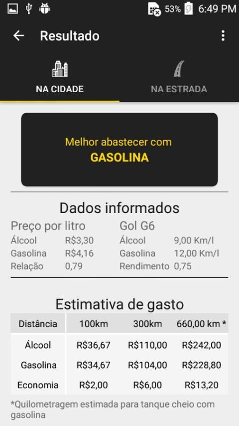 Control Car memiliki diferensial, itu membuat perhitungan mempertimbangkan jenis rute pengemudi, atau TOWN ROAD, meninggalkan hasil yang jauh lebih akurat. Selain itu, aplikasi ini juga menciptakan laporan dengan perkiraan biaya dan otonomi, sehingga Anda memeriksa berapa banyak penghasilan Anda dengan pilihan Anda, mencoba dan memeriksa.