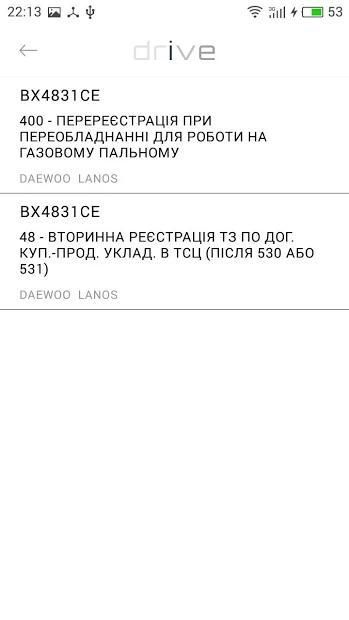 Aplikasi Drive memberikan informasi tentang kendaraan dan pemiliknya. Pencarian untuk nomor mobilnya. Sumber informasi yang disajikan adalah portal negara tunggal dari data yang terbuka, menciptakan atas permintaan Hukum Ukraina "Pada Akses ke Informasi Publik" dan Kabinet Menteri Ukraina tanggal 21 Oktober 2015 r. Jumlah 835 "Pada Persetujuan dari dataset yang akan diterbitkan dalam bentuk data yang terbuka ".