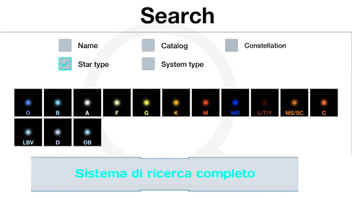 ★ Cerca le stelle per costellazione, nome, catalogo o tipo di stella (colore)