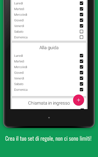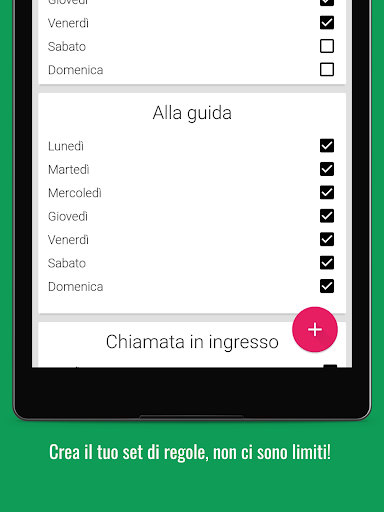 : Consente di specificare in quali giorni della settimana il bluetooth del dispositivo deve essere acceso quando si ricevono telefonate.