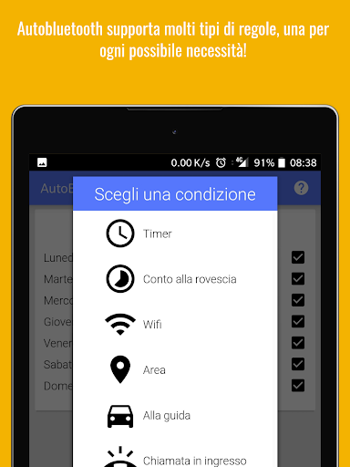 AutoBluetooth attiva o disattiva il Bluetooth senza alcuna interazione da parte dell'utente, in base alle regole impostate.