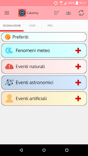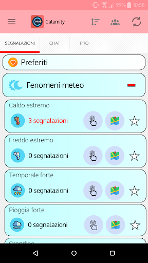 Calamity è la app che ti permette di segnalare gli eventi meteo estremi, naturali, astronomici e legati all'azione dell'uomo e di ricevere allerte in tempo reale sulla base delle segnalazioni inviate dagli altri utenti nella tua area o nel resto del mondo.