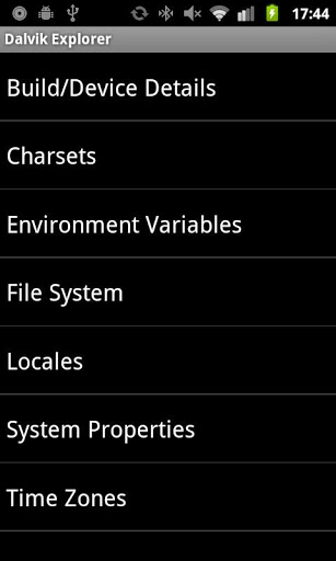 Sei uno sviluppatore che vuole sapere quali proprietà del sistema Java, variabili ambiente, java.nio.charset.charsets, java.util.locales o java.util.timetzones sono disponibili per la tua app su un dispositivo specifico?Esegui questa app sul dispositivo in questione per scoprire.