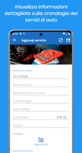 Registra la cronologia della manutenzione dell'auto aggiungendo tutte le operazioni di manutenzione e riparazione.