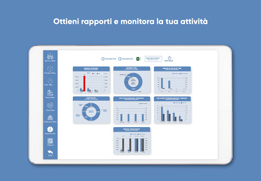 • Report in base a reddito, spesa, profitto, dipendente, tipo di pagamento, numero di prodotti o importo del prodotto