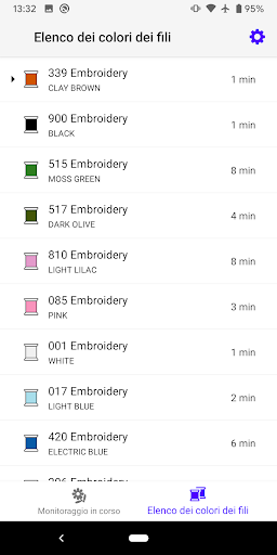 Consente di controllare le informazioni su tutti i colori dei fili utilizzati per ricamare.