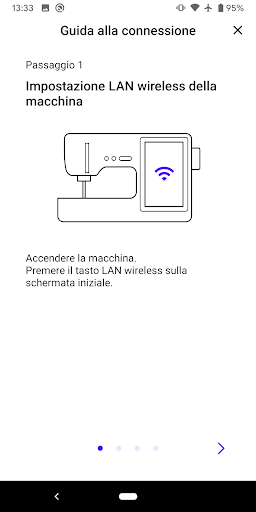 Consente di connettersi in modalità wireless alla macchina così da permettere di monitorare lo stato di avanzamento del ricamo, avvisi sui fili, ecc.