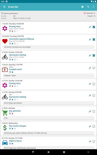 Puoi provare la versione gratuita del programma "My Events Lite", dove è possibile memorizzare solo eventi.