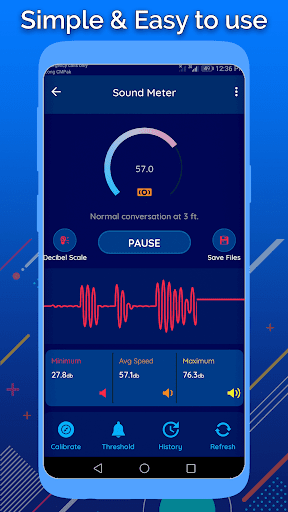Il misuratore di livello sonoro chiamato anche metro di frequenza o a volte può essere chiamato come SPL metro. Il suono troppo rumoroso è dannoso per ascoltare la funzionalità. Proteggi la tua salute familiare da suoni o rumori molto forti usando Decibel Meter o metro di rumore per rilevare il valore del dB o per misurare qualsiasi rumore ambientale perché sappiamo che il naso ambientale è molto pericoloso sia per la salute fisica e mentale umana. Il rilevatore audio rileva un suono troppo rumoroso e ti avvisa del suono forte impostando il livello di frequenza del suono forte.
