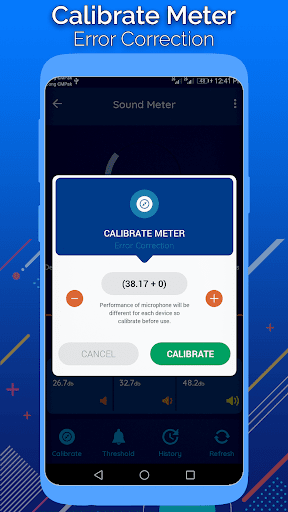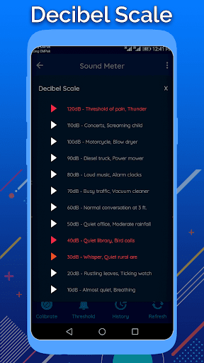 - Rilevatore audio (DB Meter) utilizza il microfono del telefono per misurare i suoni troppo rumorosi. Nella maggior parte dei microfoni dei dispositivi Android sono allineati alla voce umana.