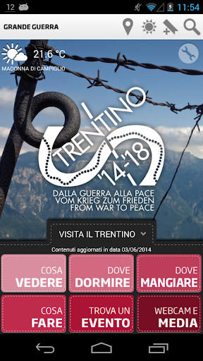 PORTA IL TRENTINO IN TASCA: i dati sono sempre aggiornati via internet, di modo che tu possa avere informazioni sempre aggiornate su quello che succede a tema Grande Guerra in Trentino. L’applicazione è navigabile anche in modalità offline: non dovrai preoccuparti di avere una connessione a tua disposizione per poter sfruttare tutto quello che il territorio ha da offrirti.